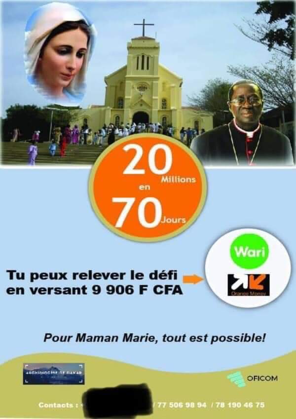 L’Archevêque de Dakar, Mgr Benjamin Ndiaye souhaite récolter 20 millions en 70 jours pour sauver la Basilique mineure Notre Dame de la Délivrance de Popenguine, qui...